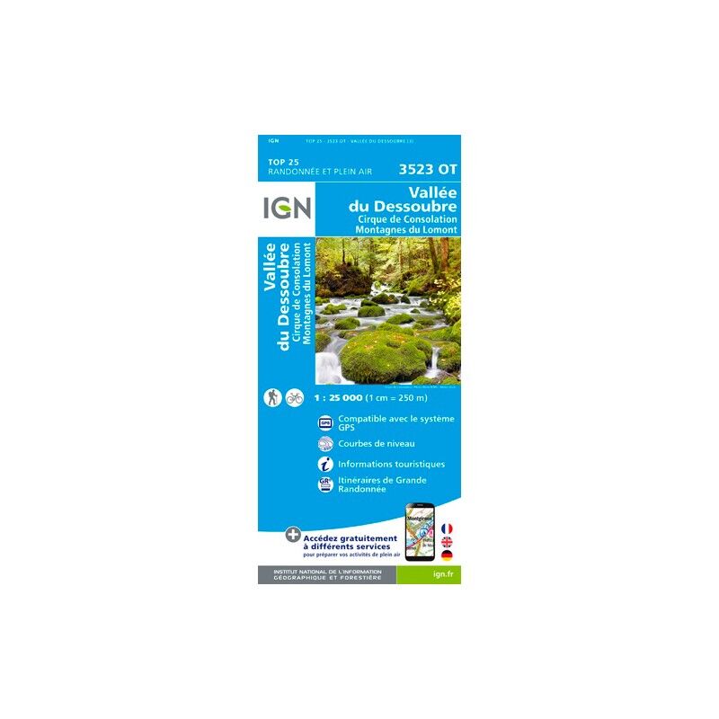 Niezależnie od tego, czy planujesz kilka kilometrów marszu, czy długą wyprawę, mapa topograficzna IGN Dolina Dessoubre-Cyrk Consolation. Góry Lomont będzie cennym wsparciem w przygotowaniu i realizacji Twojej przygody. Ta mapa IGN (skala 1:25 000) jest niezwykle precyzyjna i zawiera wszystkie niezbędne szczegóły, aby poruszać się po szlakach i drogach Doliny Dessoubre-Cyrk Consolation. Góry Lomont oraz odkrywać jej liczne skarby: ukształtowanie terenu, cieki wodne, schroniska i inne godne uwagi miejsca... Oprócz Twojego zmysłu orientacji, ta mapa turystyczna IGN jest naszym zdaniem niezbędnym elementem w Twoim plecaku i w Twoich rękach!