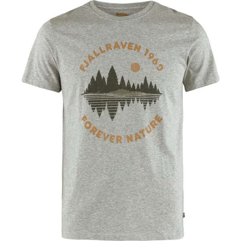 T-shirt z krótkim rękawem Forestirror dla mężczyzn, marki Fjällräven, jest idealny do aktywności na świeżym powietrzu. Jego okrągły dekolt, nadruk krajobrazu i regularny krój doskonale dopasują się do Twojej sylwetki. Zarówno stylowy, jak i wygodny, ten t-shirt to niezbędnik w garderobie każdego poszukiwacza przygód!